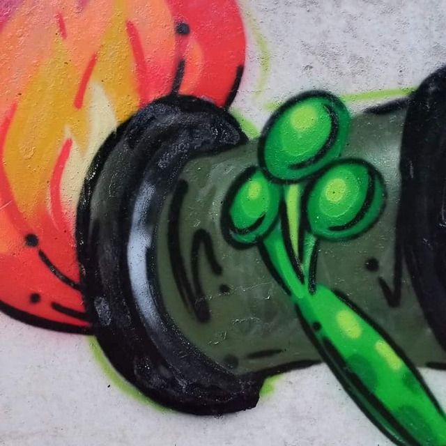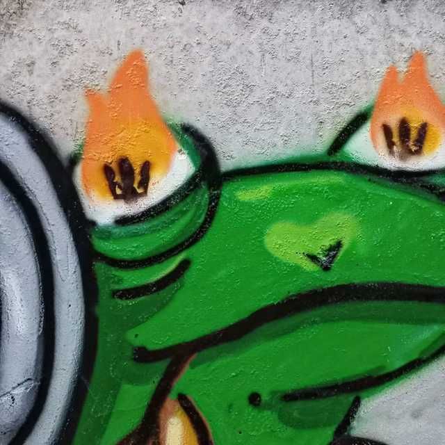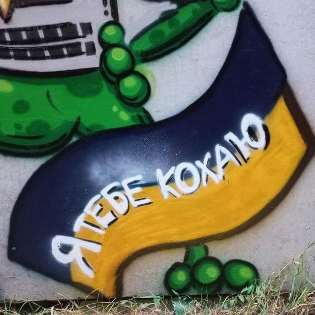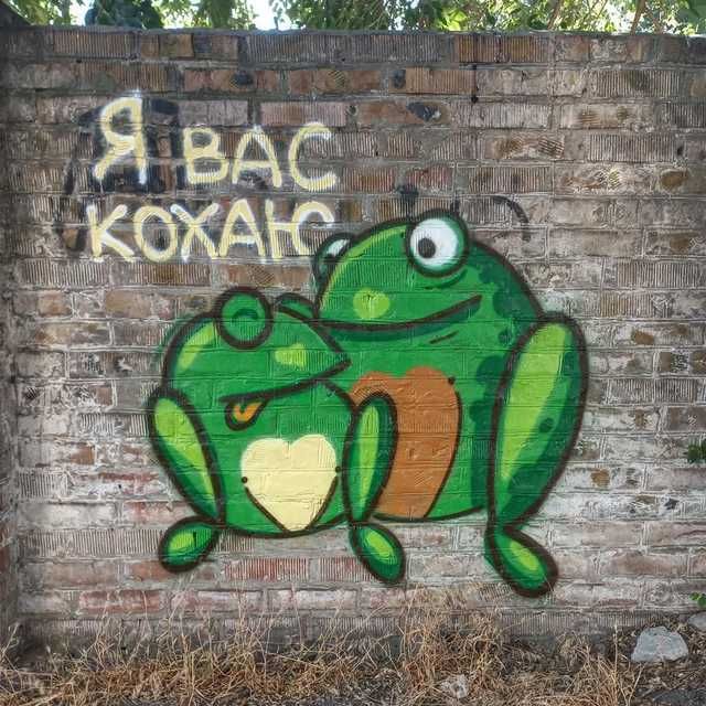Жителі мікрорайону могли бачити мурали з цікавими жабенятами. Вони зображені, як герої різних ситуацій. Тепер з'явилися і жаби з джавеліном.