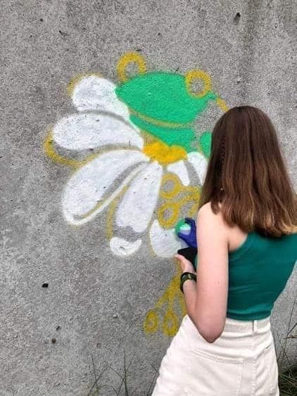 Ольга запитала у Лізи, чому саме жабки. Художниця розповіла, що є такий відтінок зеленого, який називається колір закоханої жабки. Саме ця назва надихнула дівчину створити серію муралів, де головними героями були ці створіння.