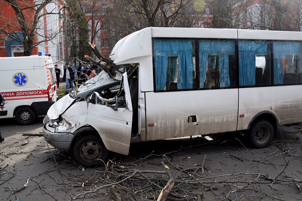 В Николаеве дерево упало на маршрутный микроавтобус – травмировались водитель, а также дети 4 и 9 лет.