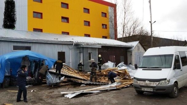 Третья жертва непогоды из Коростышева (Житомирская область) – там ветер сорвал крышу супермаркета. Конструкция рухнула на палатку, в которой торговали одеждой. 52-летняя женщина погибла не месте, ее дочь госпитализировали в реанимацию.
