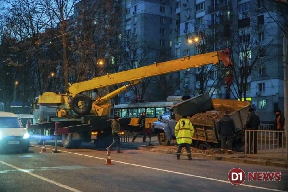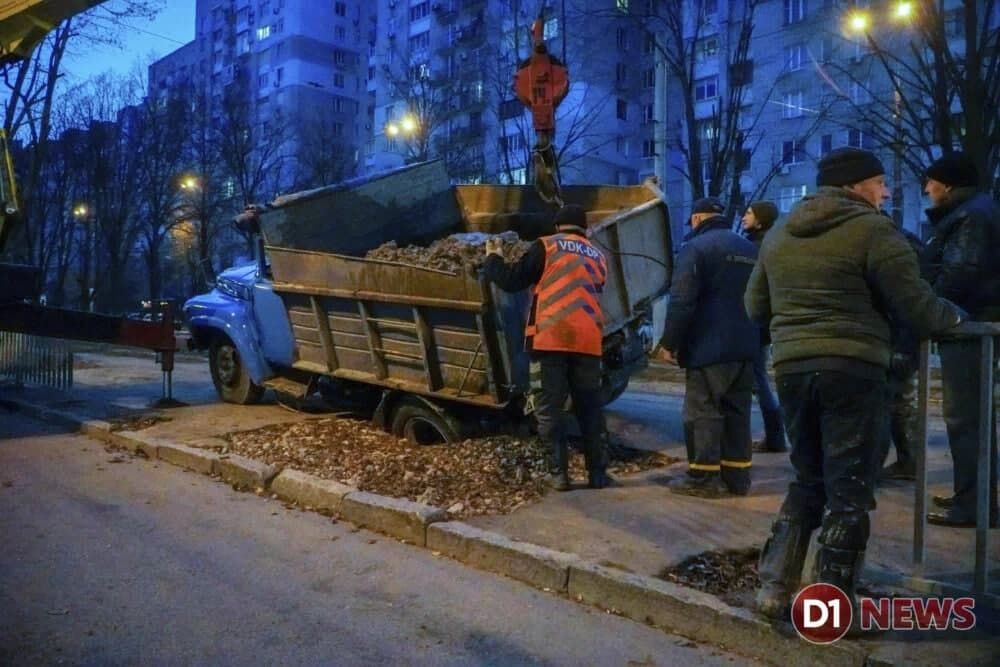 Ушел под землю: в Днепре провалился грузовик коммунальщиков (ФОТО)