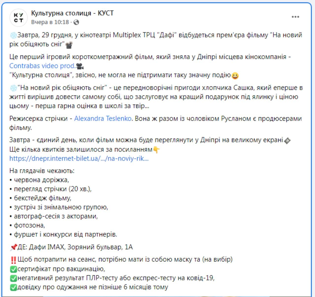 Уже сегодня в кинотеатрах можно увидеть фильм, снятый в Днепре