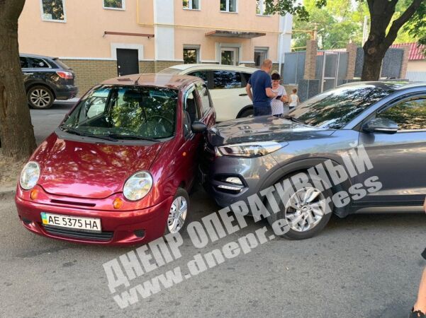 В Днепре по улице Михаила Грушевского женщина, которая управляла автомобилем Daewoo Matiz, врезалась в припаркованный Hyundai. ДТП случилось 3 июля. Как выяснилось, водитель сдавала назад, чтобы развернуться, не заметила припаркованную машину и врезалась в нее.