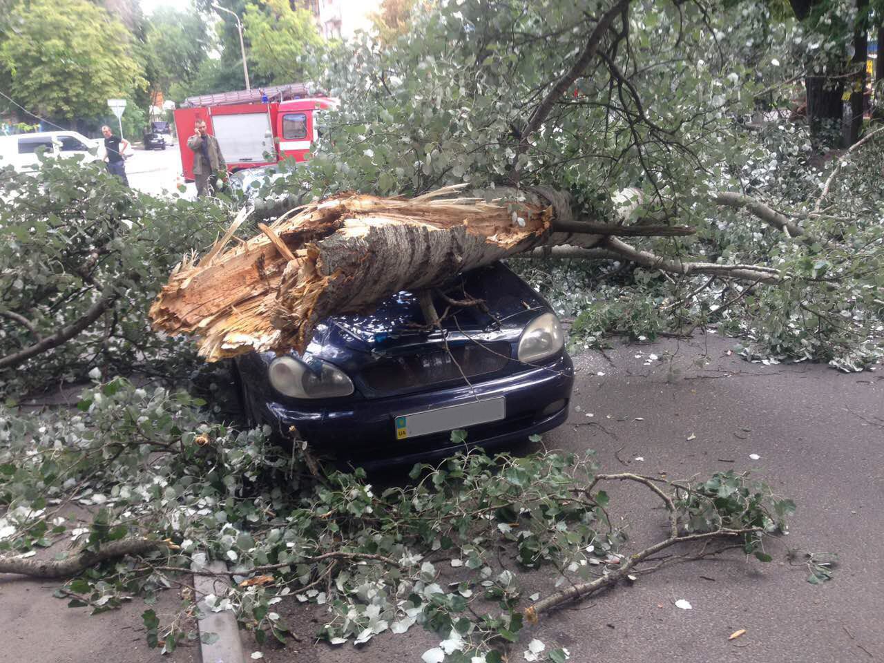 В Днепре дерево раздавило машину