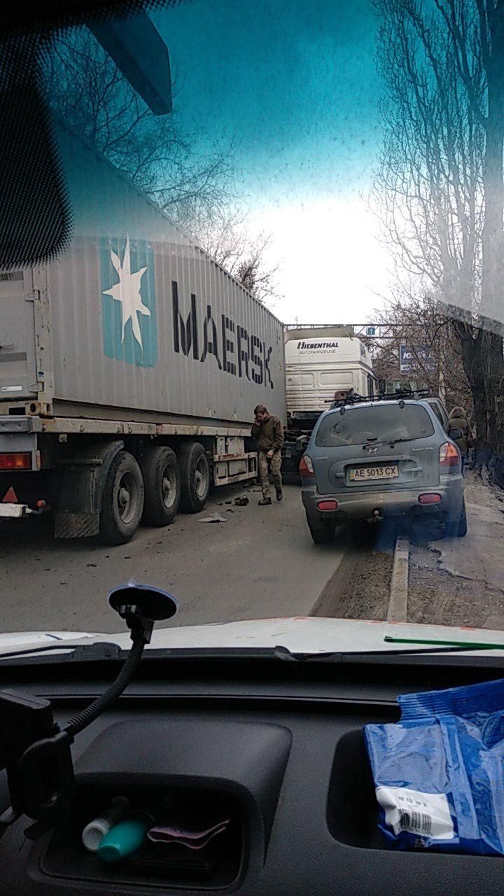 В Днепре фура перекрыла дорогу: проезд сильно затруднен