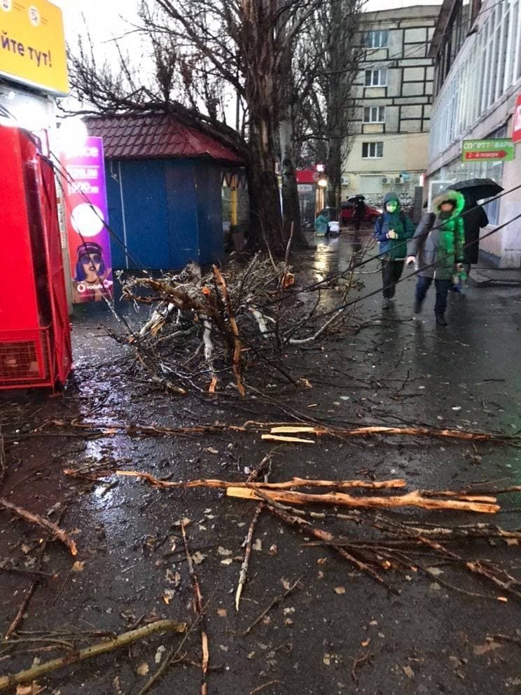 В Днепре на левом берегу от сильного ветра повалились ветки на провода.