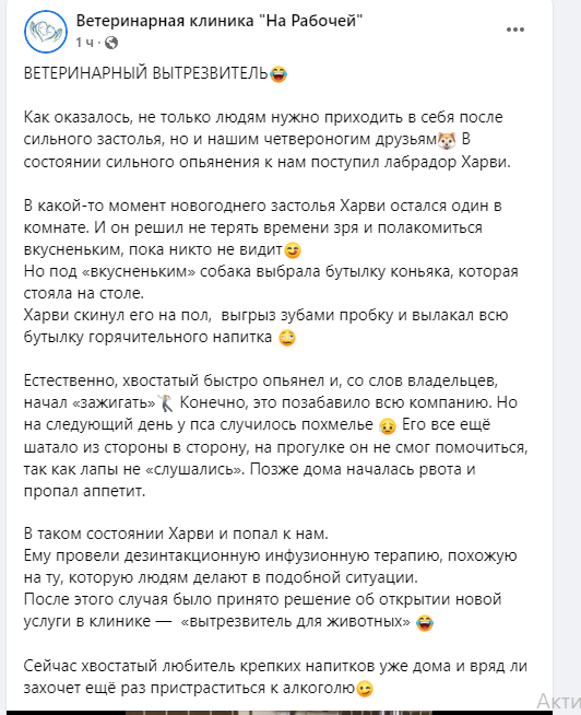 После этого случая было принято решение об открытии новой услуги в клинике — «вытрезвитель для животных», - шутят сотрудники ветклиники.