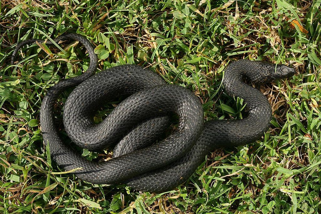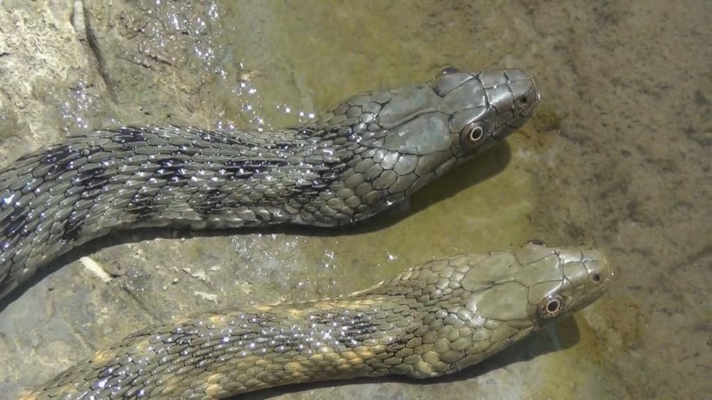 Водяного ужа часто путают с гадюкой из-за его необычной раскраски. На самом деле эта змея неядовитая и неагрессивная.