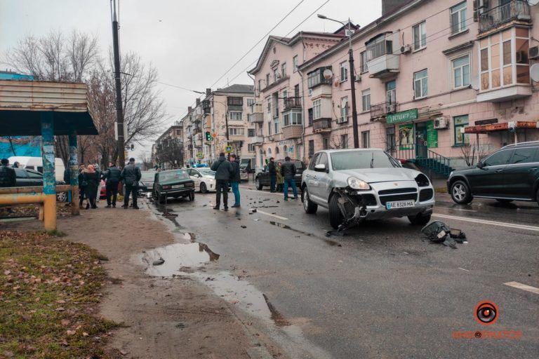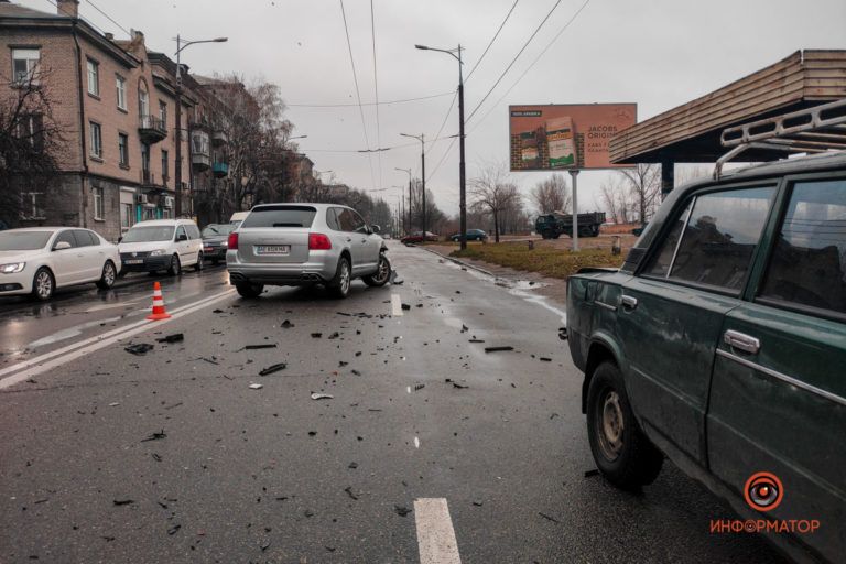 Сегодня, 27 ноября, в Днепре на Мануйловском проспекте столкнулись сразу три автомобиля: «Жигули», Porsche и Hyundai. В результате пострадали двое водителей.