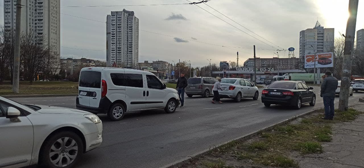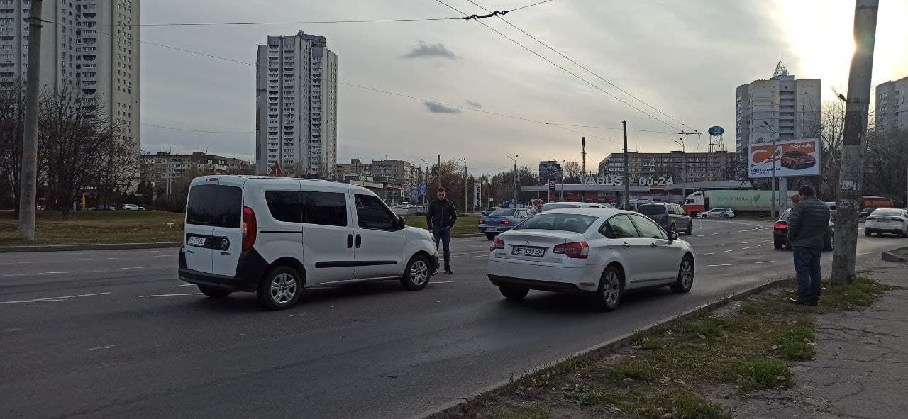 В Днепре на Победе не разминулись минивэн и легковушка: собирается пробка