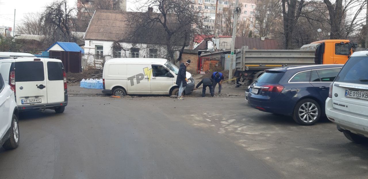 В Днепре на Подолинского приключения авто продолжаются: теперь провалился Volkswagen