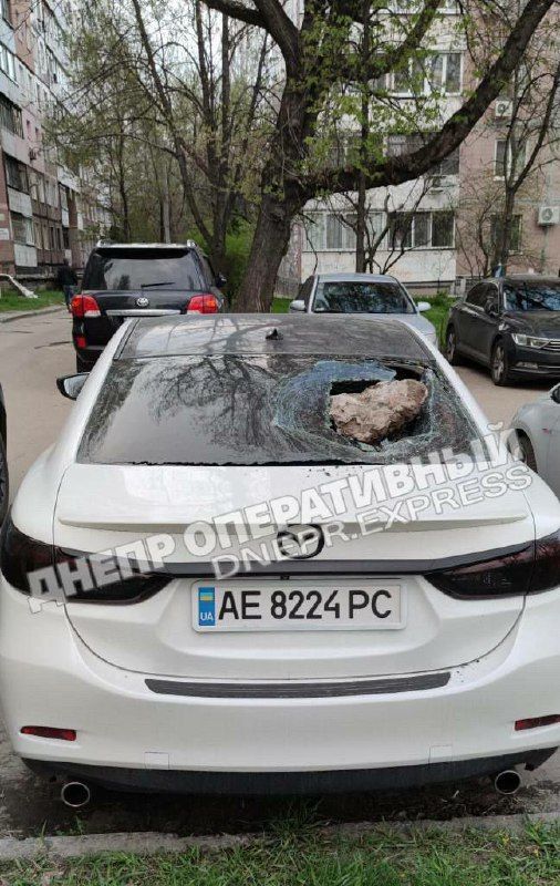 В Днепре на ж/м Победа неизвестный разбил булыжником припаркованную MAZDA