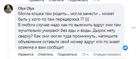 Днепряне обеспокоились этой проблемой. Многие посоветовали сходить туда, поискать охранника, чтобы он открыл гараж. Другие стали предполагать, что котят там могла родить бездомная кошка. Кто-то даже писал, что надо сделать "подкоп", чтобы котята могли выбраться оттуда.