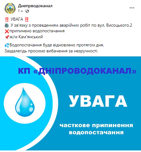 Сегодня, 8 июля, жители одного из жилмассивов Днепра останутся без воды.