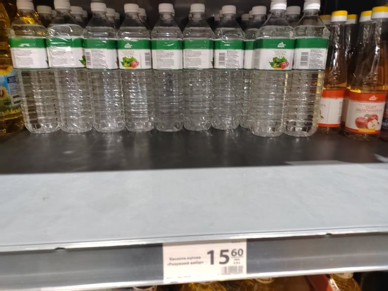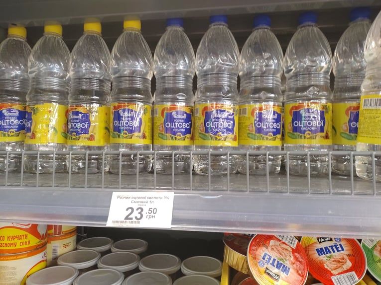 На рынках же цена зашкаливает. Уксус продают по 35 грн за литр и при этом найти его уже сложно. Впрочем, и в магазине этот товар расходится как горячие пирожки. Люди покупают минимум по 2 литра за раз, а то и больше.
