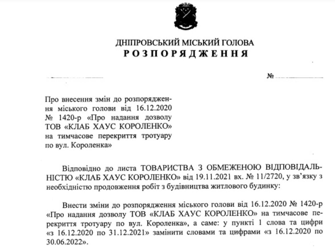 Стоит отметить, что мэр Днепра еще не подписал распоряжение, а потому оно пока не вступило в силу.