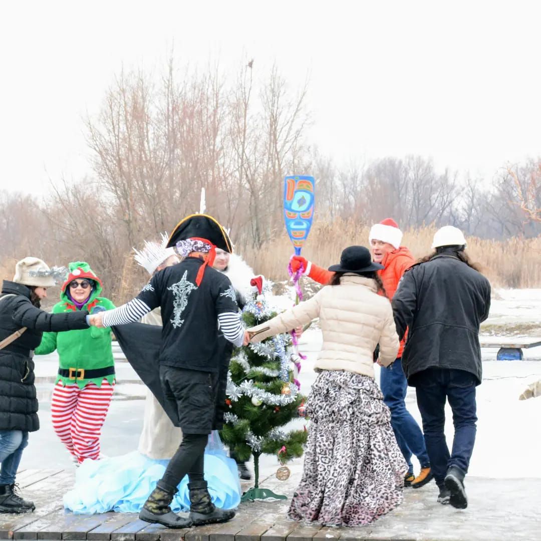 В Днепре на берегу реки заметили необычных персонажей: пиратов, Сант и Снежную Королеву.