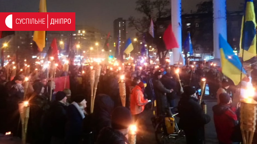 1 января в Днепре прошло факельное шествие в честь Степана Бандеры. Подобный марш проводят каждый год. В этот раз участники собрались возле парка ракет на проспекте Поля и планируют пройти до памятника Тарасу Шевченко.