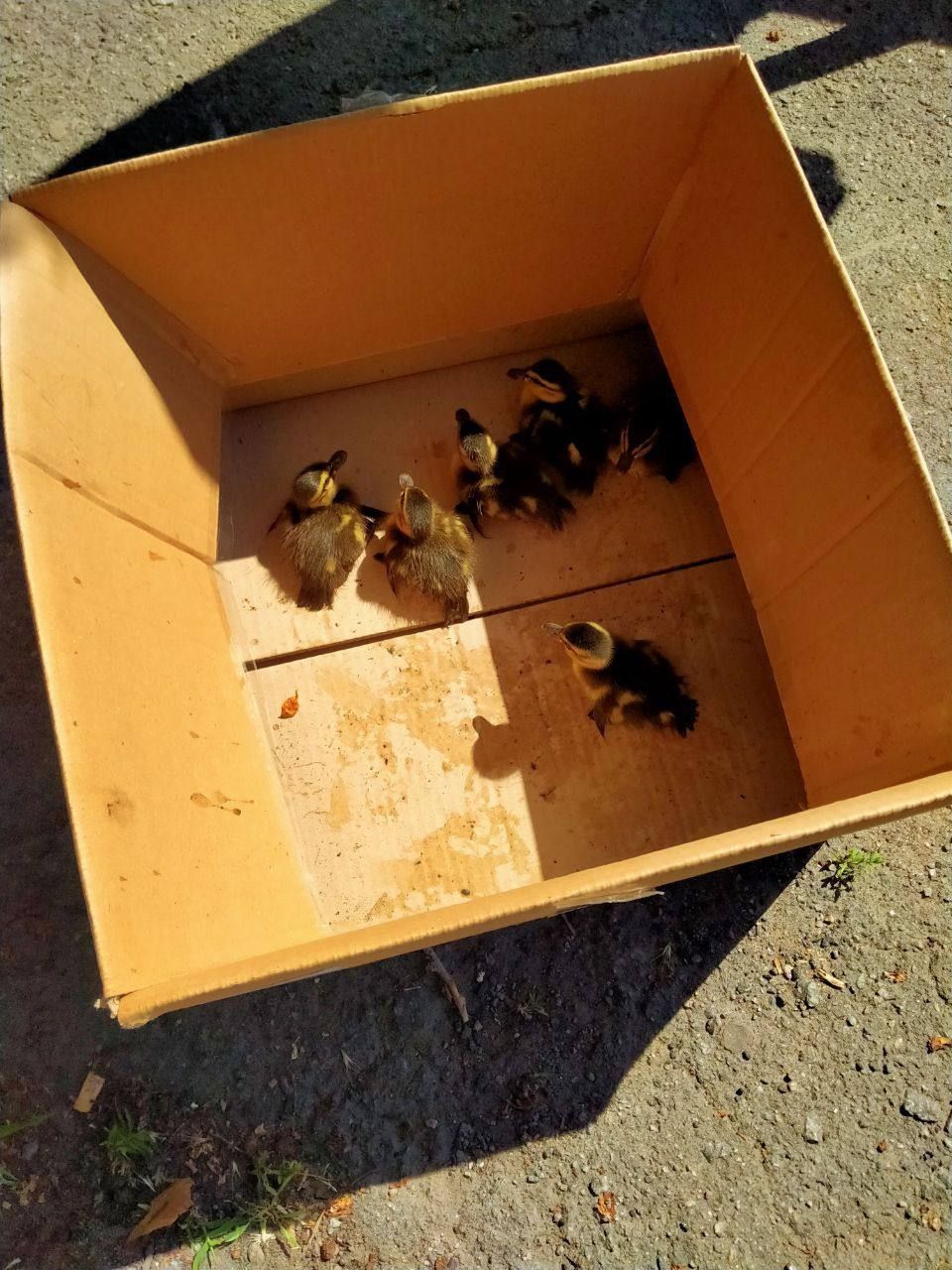 На месте инцидента приехали спасатели, которые открыли крышку ливневки. Утята испугались и разбежались, поэтому сотруднику ГСЧС пришлось буквально залезть в канализационный сток. Всего спасти 5 маленьких утяток.