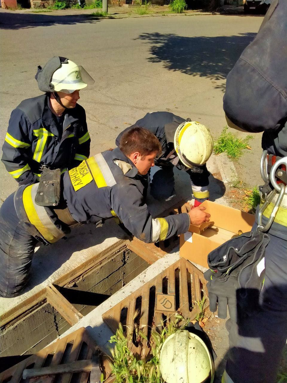 Утром 20 июня, днепряне обрались к спасателям за помощью. Как выяснилось, на улице Князя Ярослава Мудрого в Центральном районе города, утята упали в дождевой канализационный люк и не могли выбраться самостоятельно.