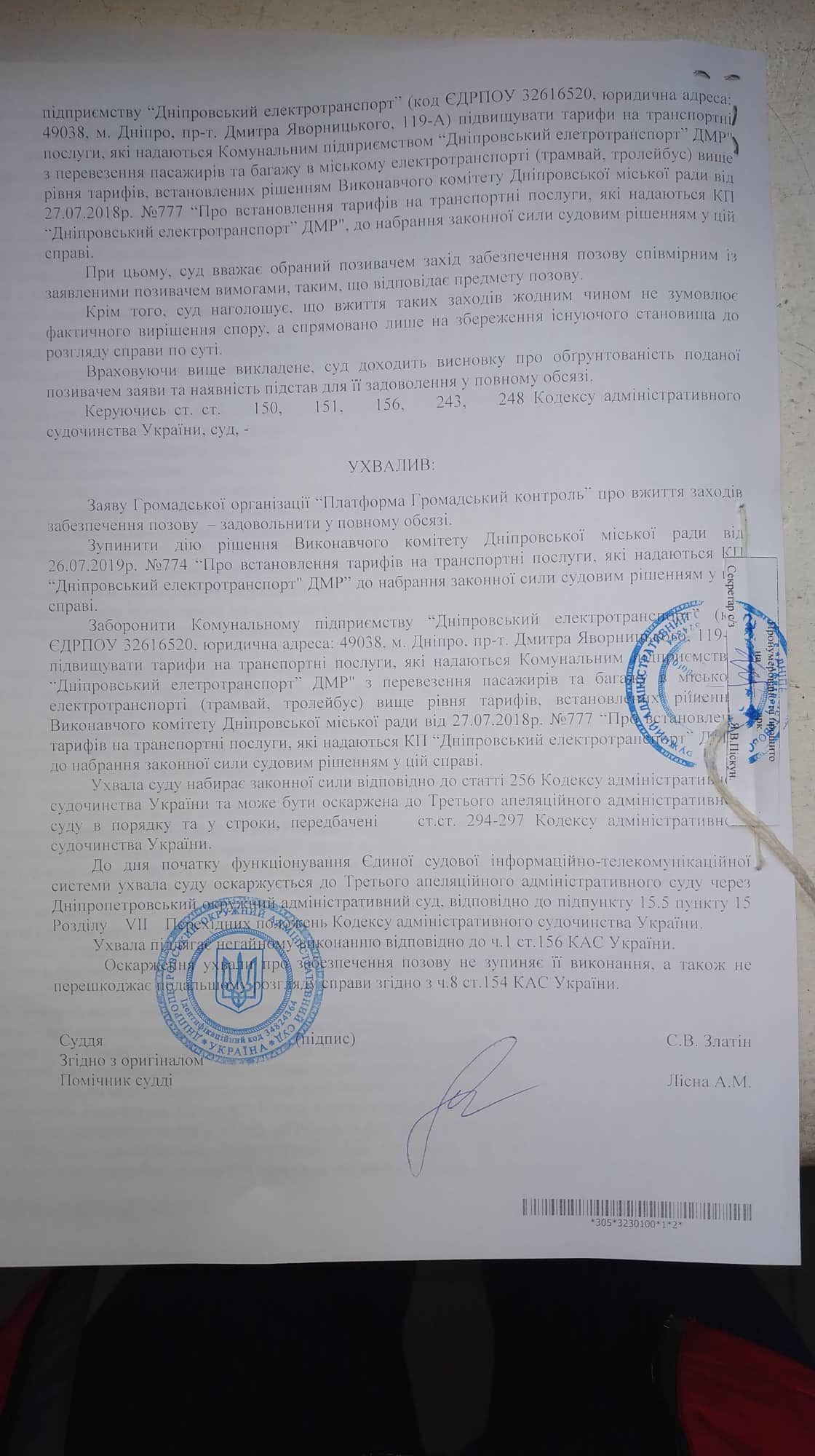 «Суд остановил решение о повышении тарифа на проезд в трамваях и троллейбусах до 6 грн. Суд запретил КП Днепропетровский электротранспорт повышать стоимость проезда до решения суда по сути».