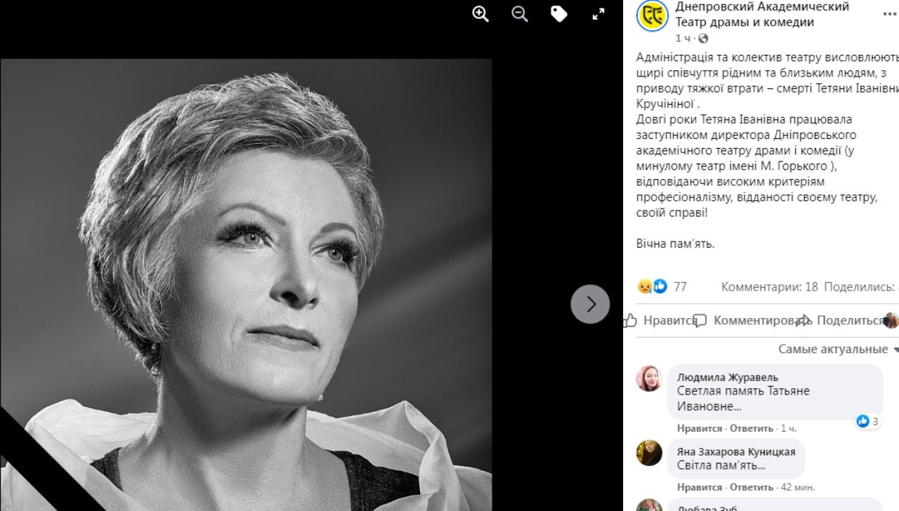 Сегодня на ФБ-странице Днепровского академического театра драмы и комедии сообщили об этом.