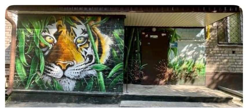 Жители дома №13 по улице Тверской разрисовали подъезд целыми картинами с изображениями животных.