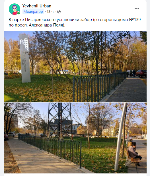 Это не первый раз, когда парковые зоны в Днепре ограждают забором. На Калиновой таким образом "закрыли" сквер Евгения Клочко. Сейчас его собираются реконструировать. А забор поставили, чтобы вандалы раньше времени не разнесли по кусочкам эту зону.