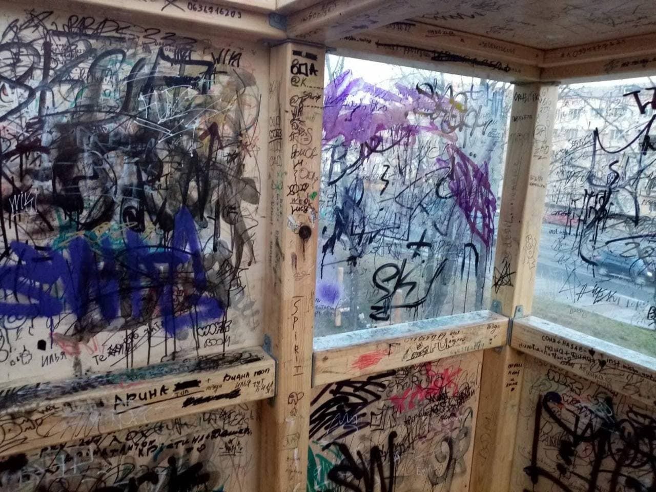 Ко дню города в Днепре открыли новый сквер на левом берегу и с тех пор он стал частой жертвой вандалов. Сначала там вытоптали газон и сломали пару качелей. Теперь же взялись за горку. В этом случае скорее всего виноваты дети и подростки, которые гуляют в этом месте. Внутри сооружение разрисовано бессмысленными граффити, вандалы оставили свои имена и даже адреса от страниц в соцсетях.