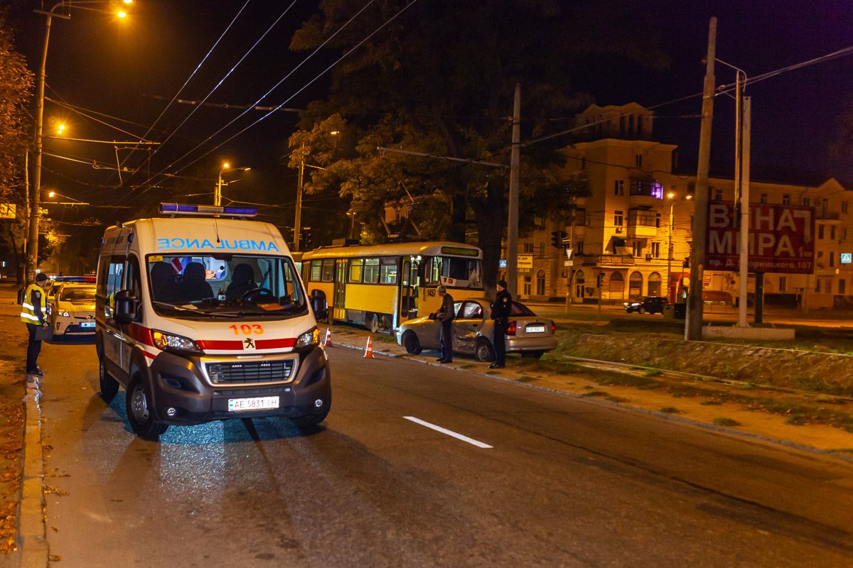 «Lanos» из-за аварии отлетел на трамвайные пути и временно заблокировал движение трамваев.