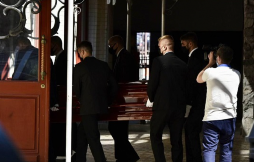 Церемония проходит в помещении Национальной филармонии. На прощание пришел президент, близкие и коллеги Григория Чапкиса. Из Америки приехал его сын Грег Чапкис.