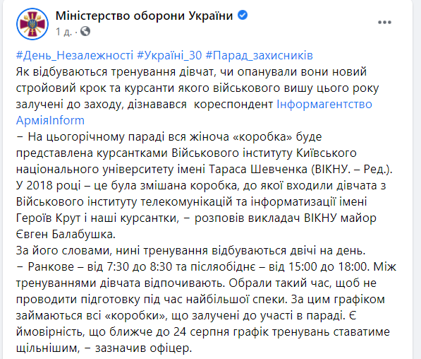 Сегодня Министерство Обороны опубликовало фотографии с репетиций марша курсанток ко Дню Независимости. На фото видно, как все девушки маршируют на небольшом каблуке. Из-за этой обуви в обществе разгорелся скандал. Одни восхищались красотой шествия, а другие осуждали мероприятие, обвиняя организаторов в сексизме и издевательствах над девушками. Потому что маршировать 4 часа на каблуках — не только утомительно, но и вредно для спины.