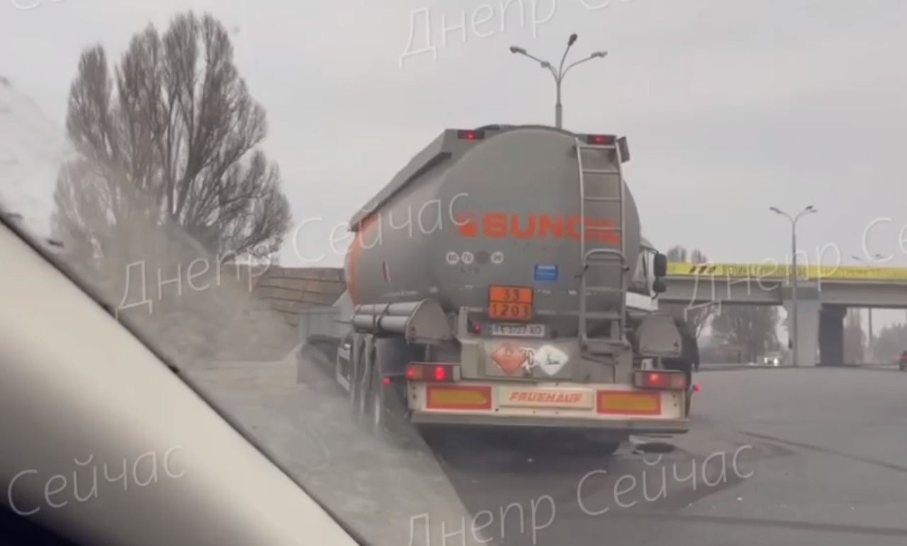 В Подгородном возле "Эпицентра" развернуло автоцистерну: движение затруднено