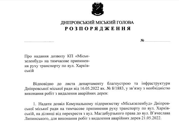 Стоит отметить, что мэр Днепра еще не подписал распоряжение, а потому оно пока не вступило в силу.
