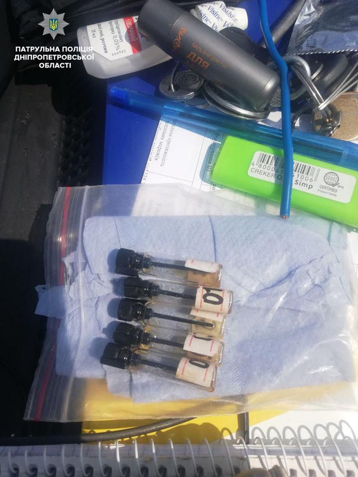 Патрульным удалось обнаружить у мужчины 5 флаконов с неизвестным веществом.
