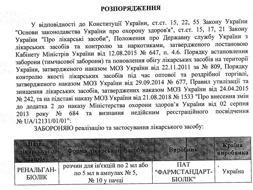 Под запретом оказались обезболивающее «Ренальган-Биолек» и антисептик «Биосепт».