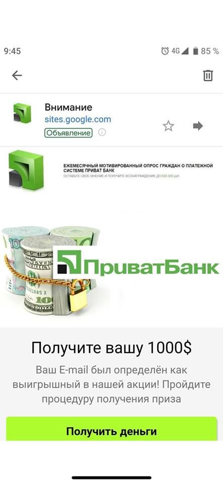Так, в сети вы можете наткнуться на различного рода «опросы» или «розыгрыши» от «ПриватБанка». Там предлагается пройти небольшие легкие опросы, за которые обещается денежное вознаграждение. Далее на сайте просят указать личные данные, включая всю необходимую для использования карты данные. Так мошенники получают к ней полный доступ.