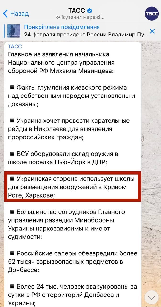 Вчера минобороны рф заявляло, что в школах Кривого Рога якобы размещено вооружение