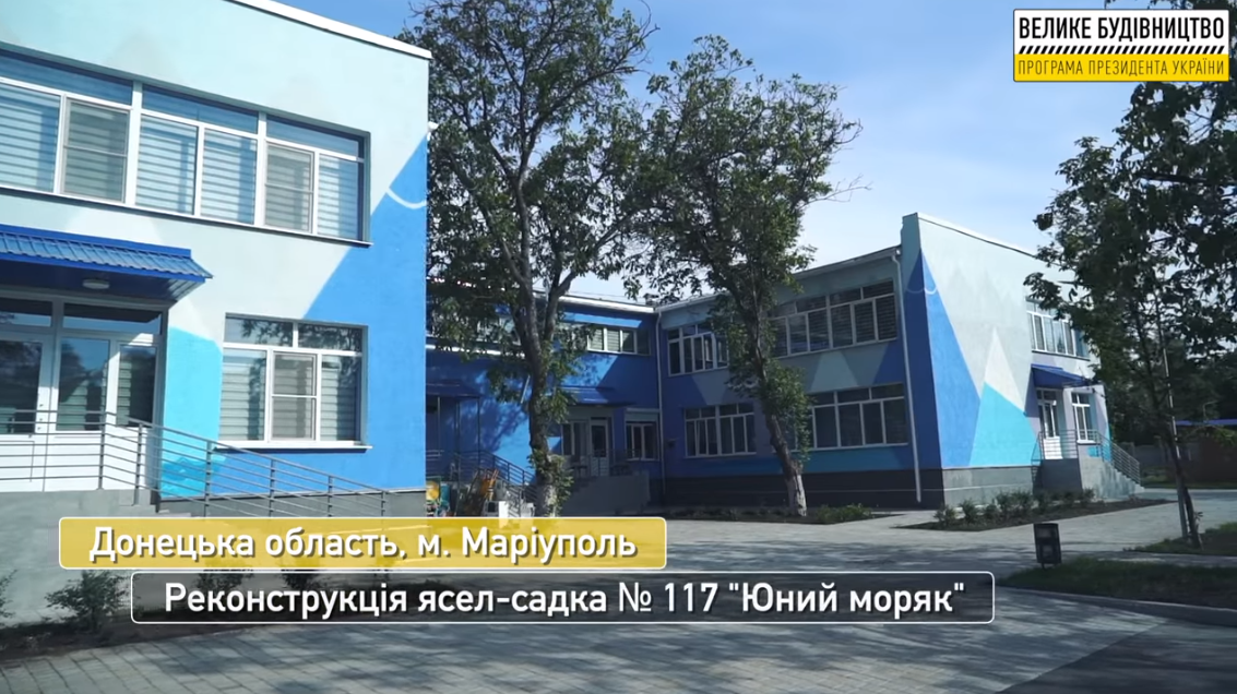 В Мариуполе подходит к концу реконструкция ясель-садика №117 «Юный моряк».  Проектная стоимость работ – 40 млн гривен. На первом этаже садика установлены полы с подогревом, в каждой группе обустроен отдельный санузел и кухонный блок. Садик приспособлен для детей с особыми потребностями.