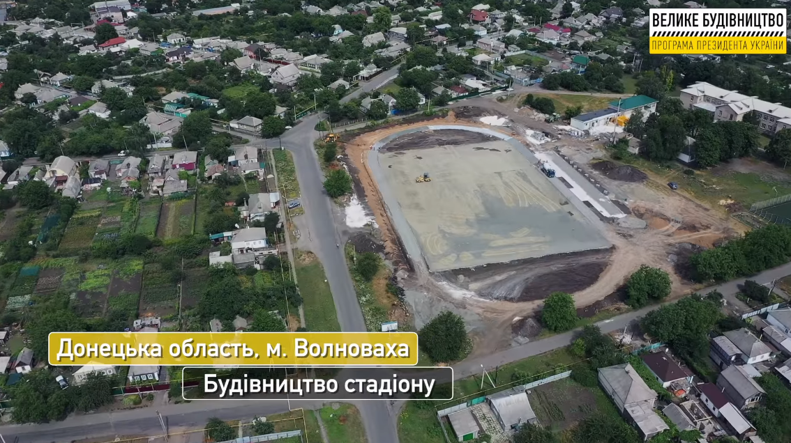 В Волновахе рядом с общеобразовательной школой №3 строится новый стадион с искусственным покрытием, беговыми дорожками, трибунами для зрителей на 250 мест, раздевалками и душевыми. Стоимость работ оценивается в 27 млн гривен.