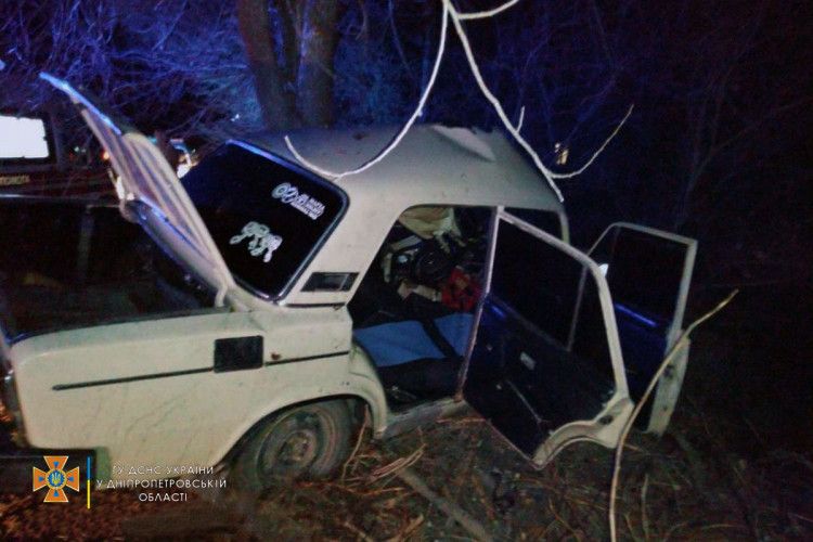 Влетел в дерево: на Днепропетровщине 18-летнего водителя жигуля вырезали из машины спасатели