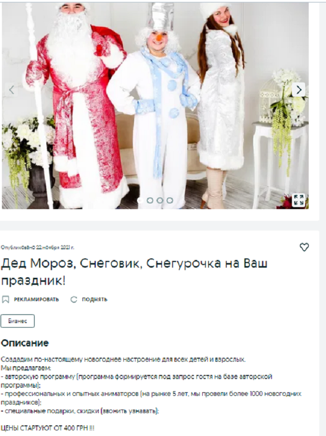 Во сколько обойдется визит Санты к ребенку в Днепре в 2021/2022 году