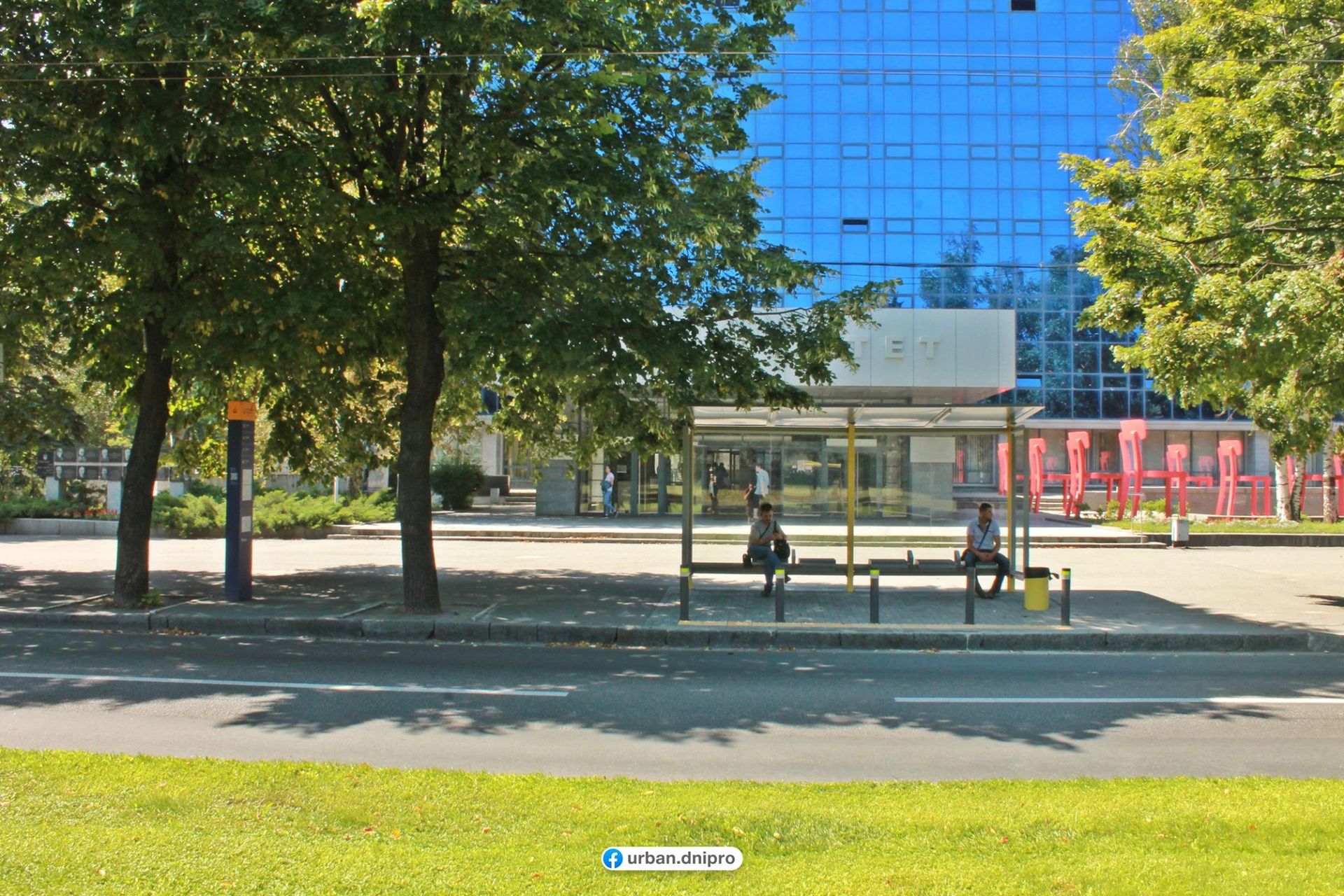 Как сообщает Urban Dnipro, возле этой остановки установлен достаточно низкий бордюр. Это облегчает посадку в общественный транспорт людям пожилого возраста, с коляской или пассажирам с ограниченными возможностями.