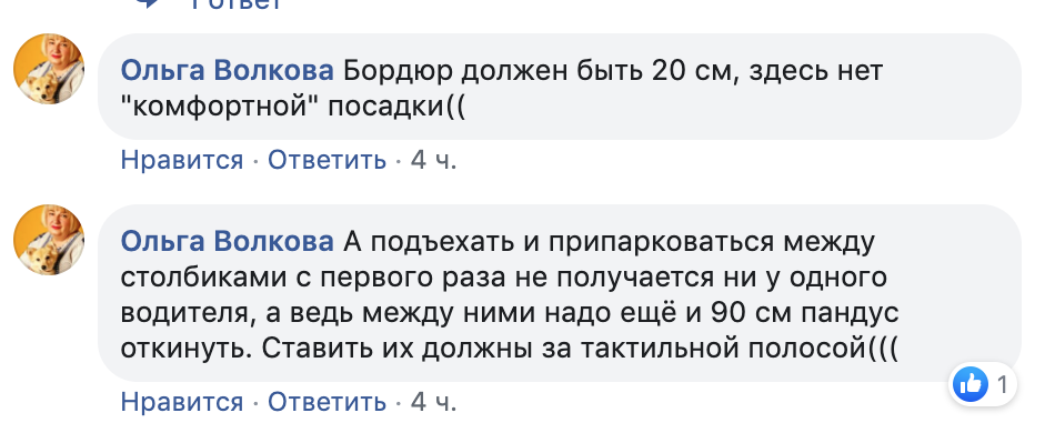 Не обошлось без критики. В комментариях некоторые пользователи отметили, что бордюр недостаточно низкий, а аварийный столбики должны быть и со стороны движения тоже: