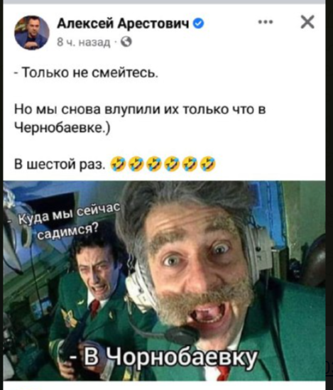 "Только не смейтесь. Но мы снова влупили их только что в Чернобаевке. В шестой раз", – сказано в сообщении.