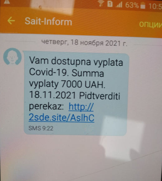 Все это происходит следующим образом: клиентам через популярные мессенджеры или же электронную почту приходит сообщение о доступных выплатах за вакцинацию от COVID-19, в размере нескольких тысяч гривен.