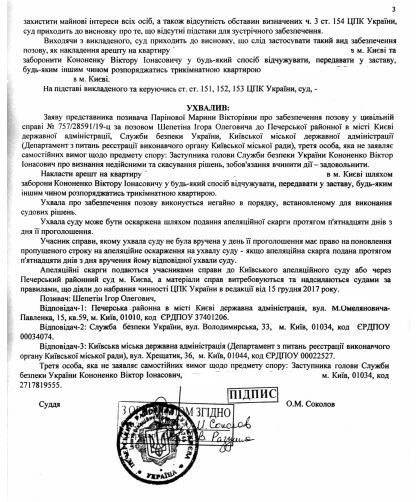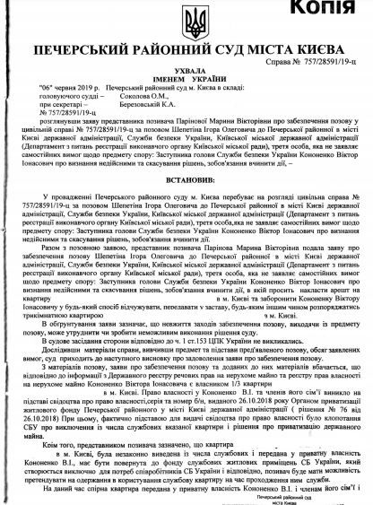 «Коллеги, информирую, что сегодня, в рамках учебно-воспитательных мероприятий по углублению демократии, по нашему иску суд арестовал имущество одного из самых ближайших соратников Порошенко — заместителя Главы СБУ Кононенко. Того самого, который выполнял грязные задачи Порошенко и Грицака, а потом получил от государства и присвоил себе дорогую квартиру в элитном комплексе центре Киева, — отметил Портнов. – Цель — вернуть государству украденное у него имущество и ещё раз передать сигнал приспешникам Порошенко — скоро всё выложите из карманов и положите туда, откуда взяли», — резюмировал Портнов.
