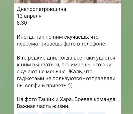 В своем телеграм-канале глава ДнепрОВА показал свою "боевую команду" - собак по кличке Ташик и Хара. Он отметил, что скучает по ним, когда пересматривает фотографии в телефоне. А когда удается вырваться домой, понимает, что собаки также скучают по своему хозяину. Он даже пошутил, что если бы они умели пользоваться гаджетами, то слали бы селфи и приветы.