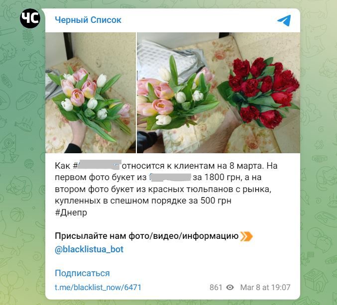 Как рассказали днепряне, сегодня они купили два букета тюльпанов. Один заказали на известном цветочном сайте за 1800 гривен, а второй спешно приобрели на местном рынке.