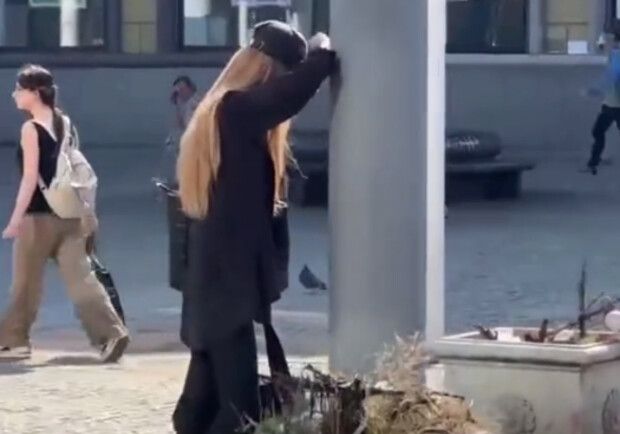 В августе месяце жители Днепра обратили внимание на необычную девушку на Европейской площади. Каждый день в жару она стояла у столба одетая в закрытую черную одежду. Некоторые пытались с ней заговорить, но девушка не отвечала. Сначала прохожие думали, что девушке плохо и предлагали ей помощь, но она отказывалась, потом люди стали специально подходить к ней, пытаться заговорить, тролить и обижать, но она не реагировала. В один день девушка куда-то исчезла и некоторое время ее не было. Сейчас она иногда снова появляется у столба, одетая во все черное.